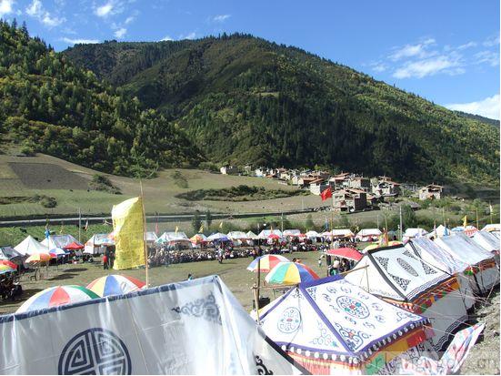 观花节,是嘉绒藏区特有的节日,藏语叫“若木纽”,是观花的意思,举办时间为每年农历六月十八日。此时到处青山绿水,人们喜气洋洋,以村寨为单位,成群结队到草坝上、森林里搭帐游玩。每次活动时间三至十多天不等。每次观花节,举行煨桑、赛马、打靶等活动,大家在一起吃糌粑、品咂酒、叙友情、谈丰收。到夜晚,人们燃上篝火,男女老少手拉手,在舞队首领手中的串铃摇奏下,围着篝火,踏着欢快的舞步,唱着优美的民歌,直到东方升起红霞。观花节还是青年男女相识相恋的佳期。
